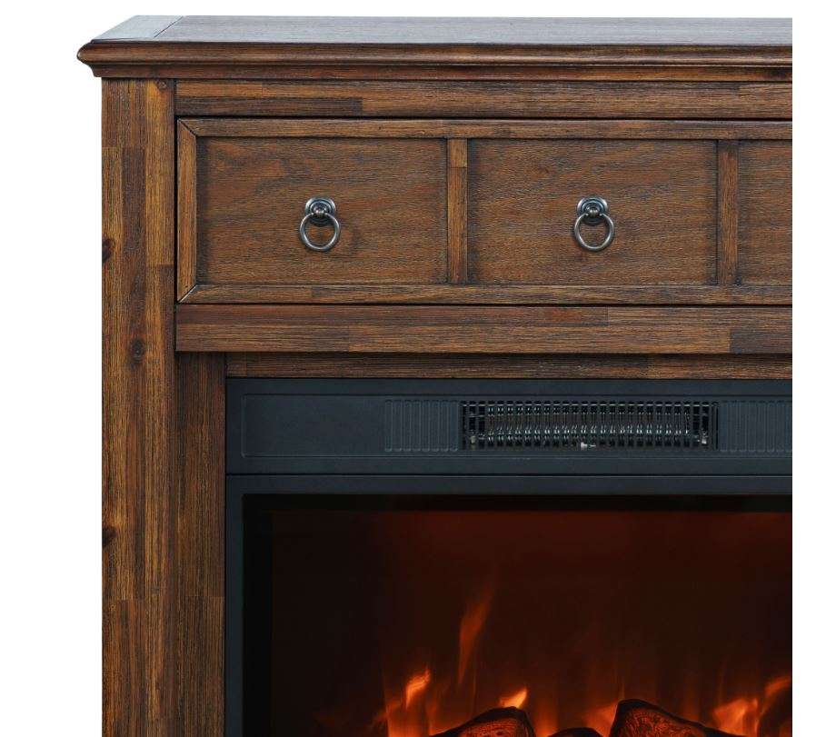 The Bakersfield 32″ Electric Fireplace Console brings together rustic character and modern convenience in one stylish piece. Finished in a warm wood tone with classic ring-pull hardware, this compact console features a transitional farmhouse design that complements a variety of home décor styles.