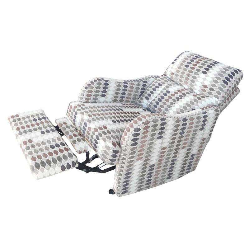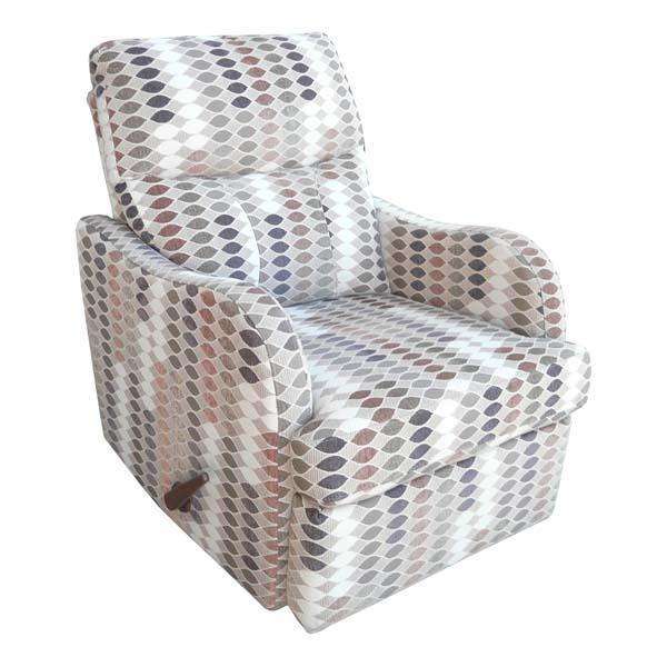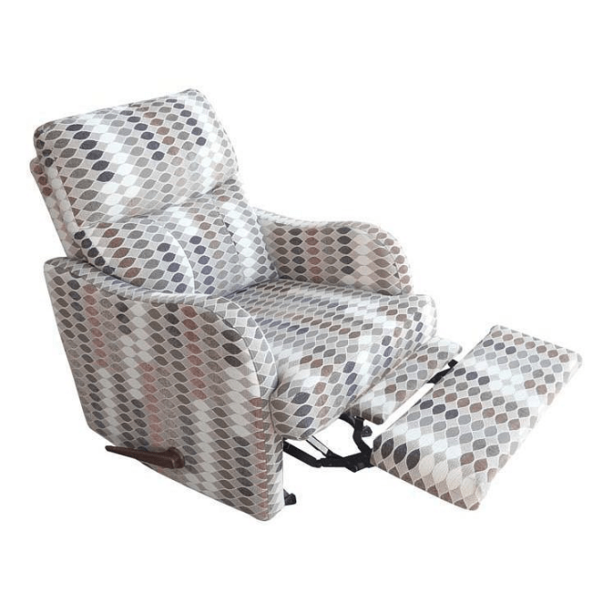 Featuring a transitional style, the Exodus Recliner boasts an eye-catching ellipses fabric design, a supportive T-shaped cushion, and curved-in track arms. Perfectly blending modern design with a touch of classic charm, it complements any decor style, whether you’re looking to make a statement with a sleek, curvy chair or to embrace the allure of straight lines and clean edges.