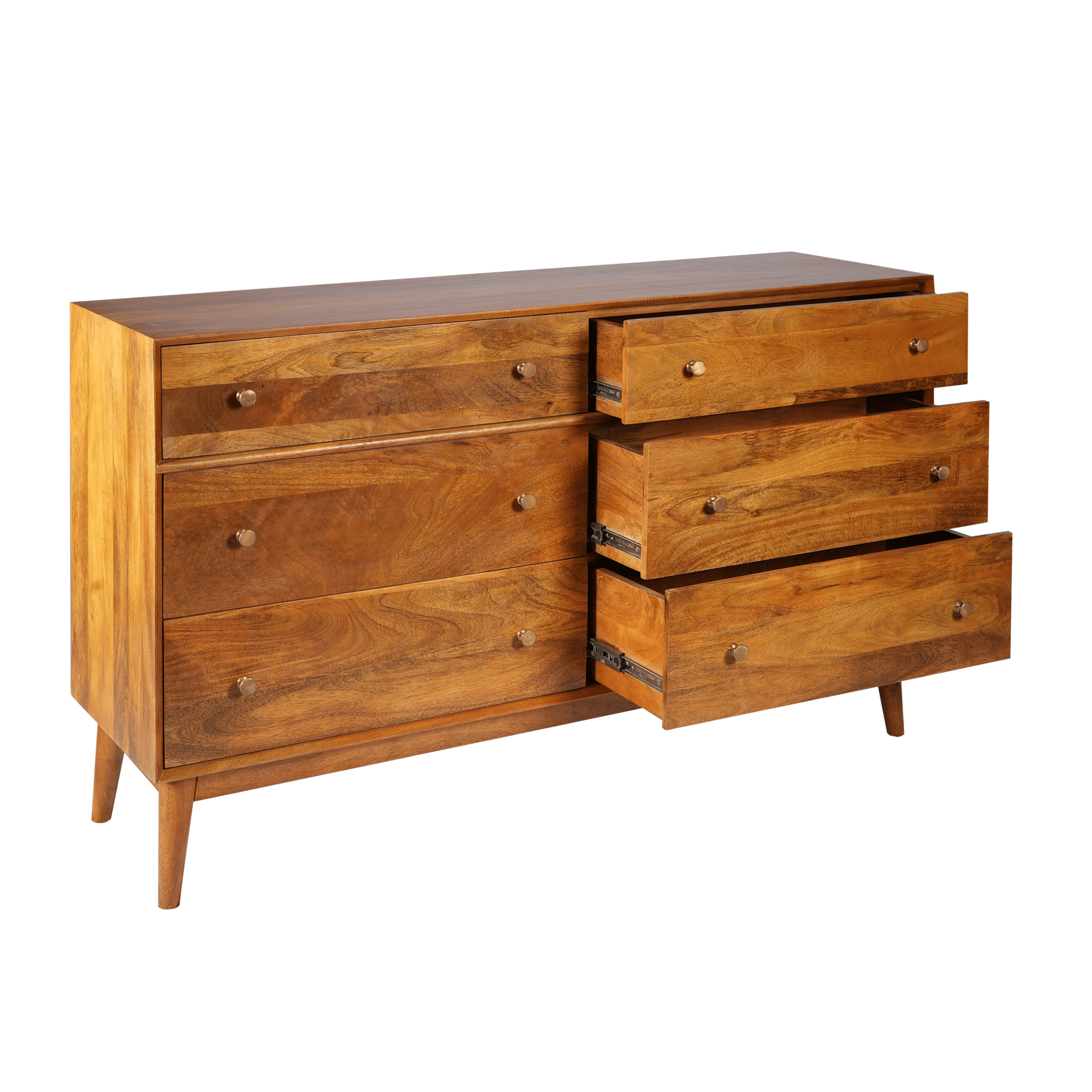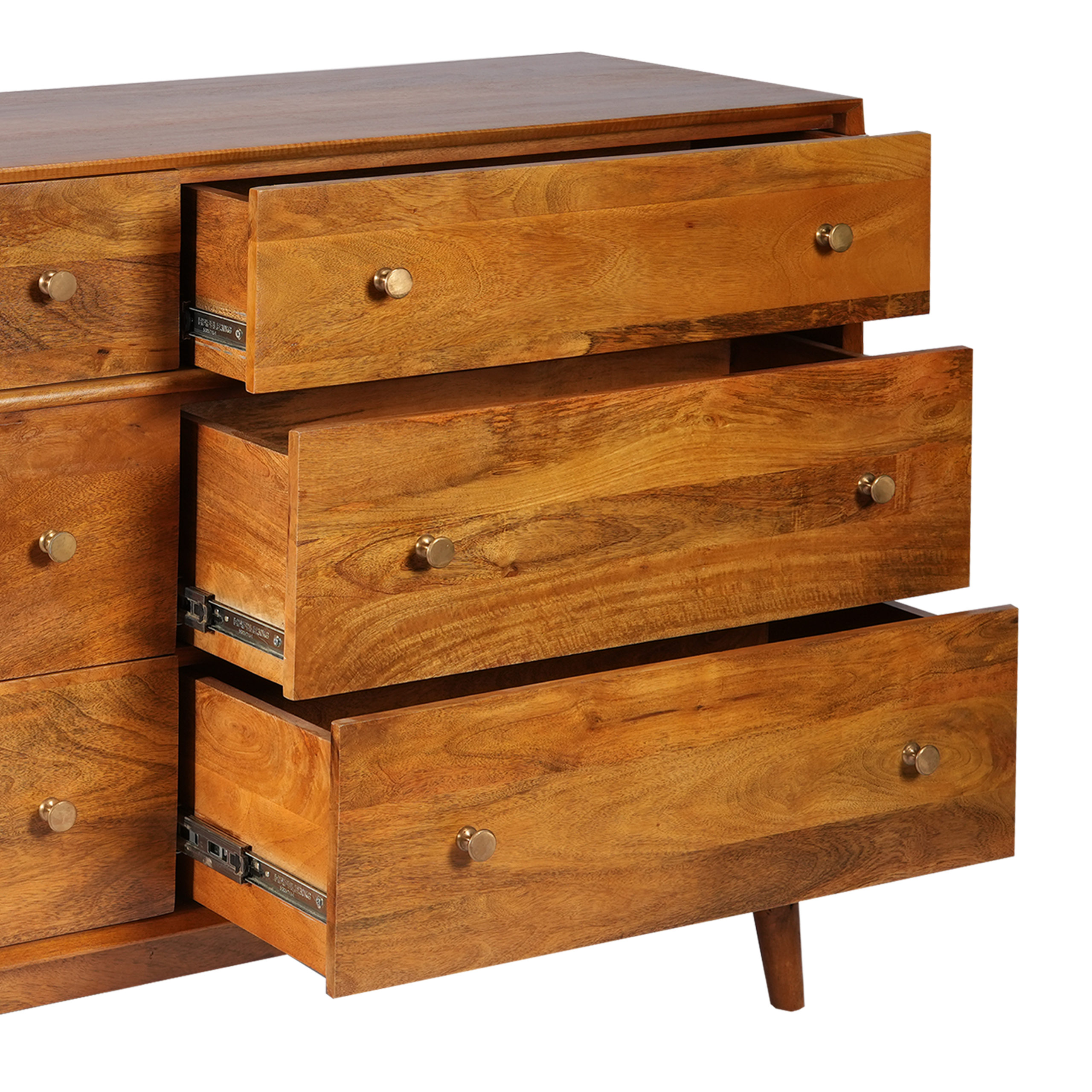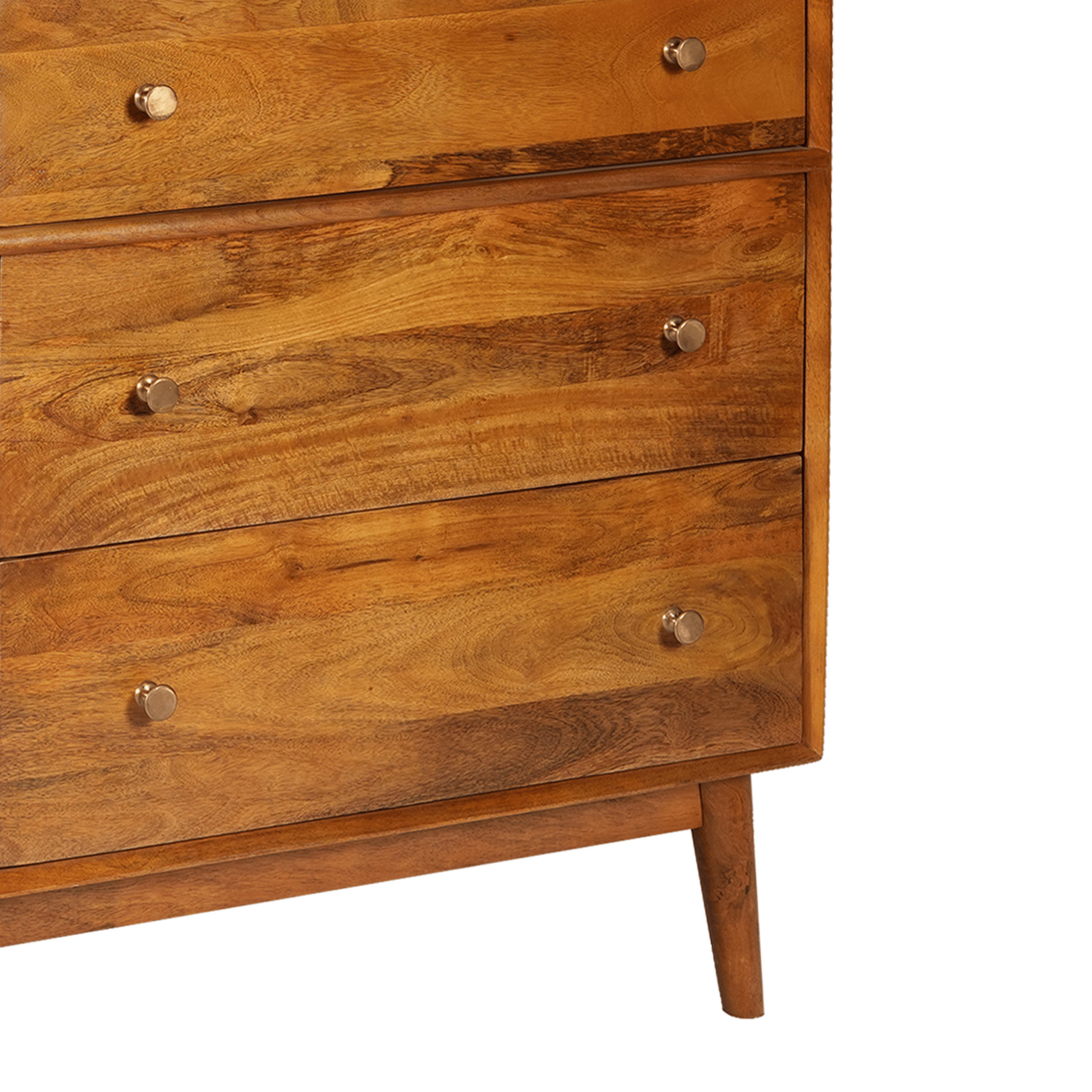 The Mid-Century is a robust collection that features items for every room. With a gorgeous cognac finish, the bedroom collection are made with Mango wood. Classic lines make this collection a modern staple inspired by the past.
