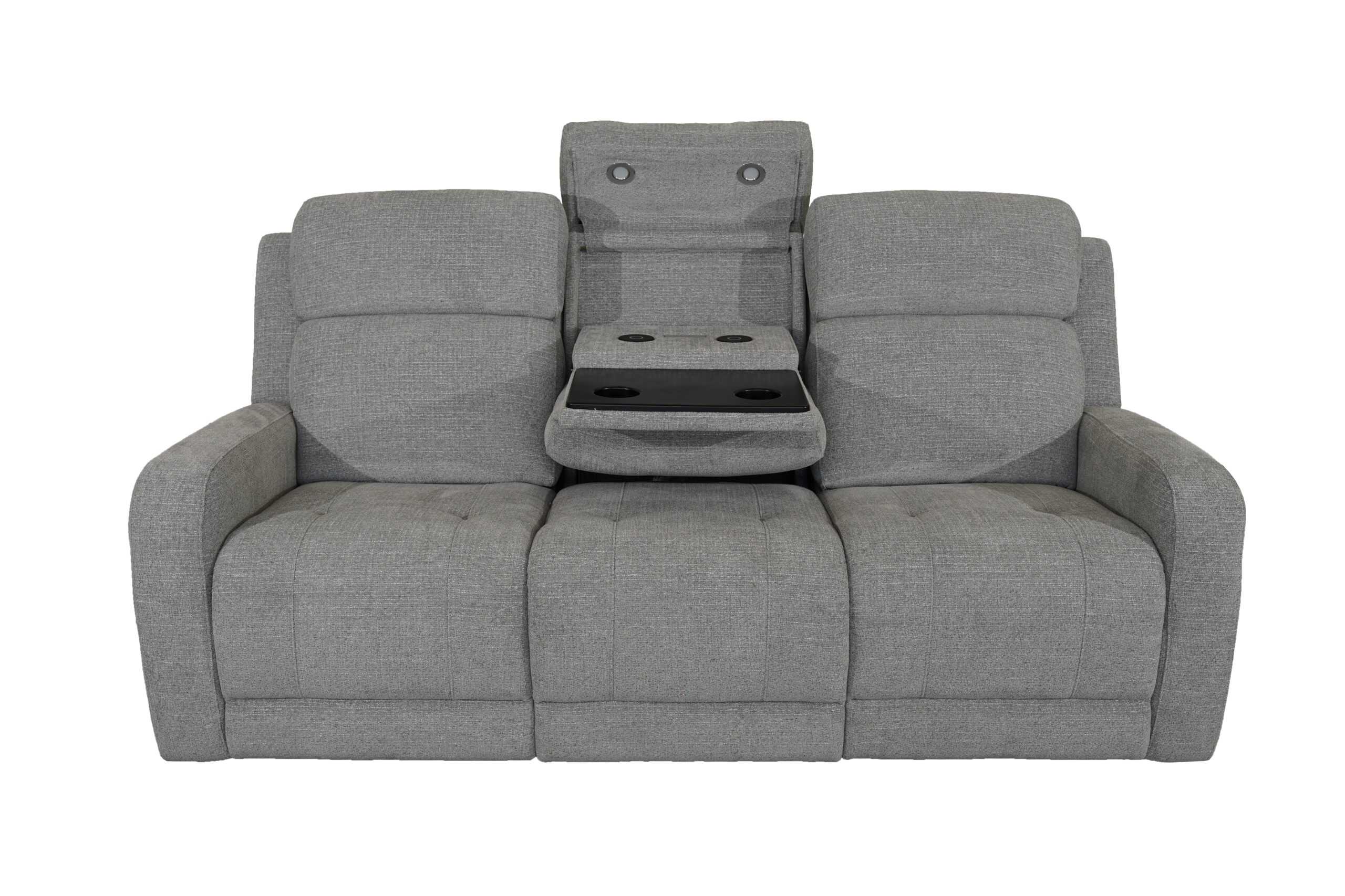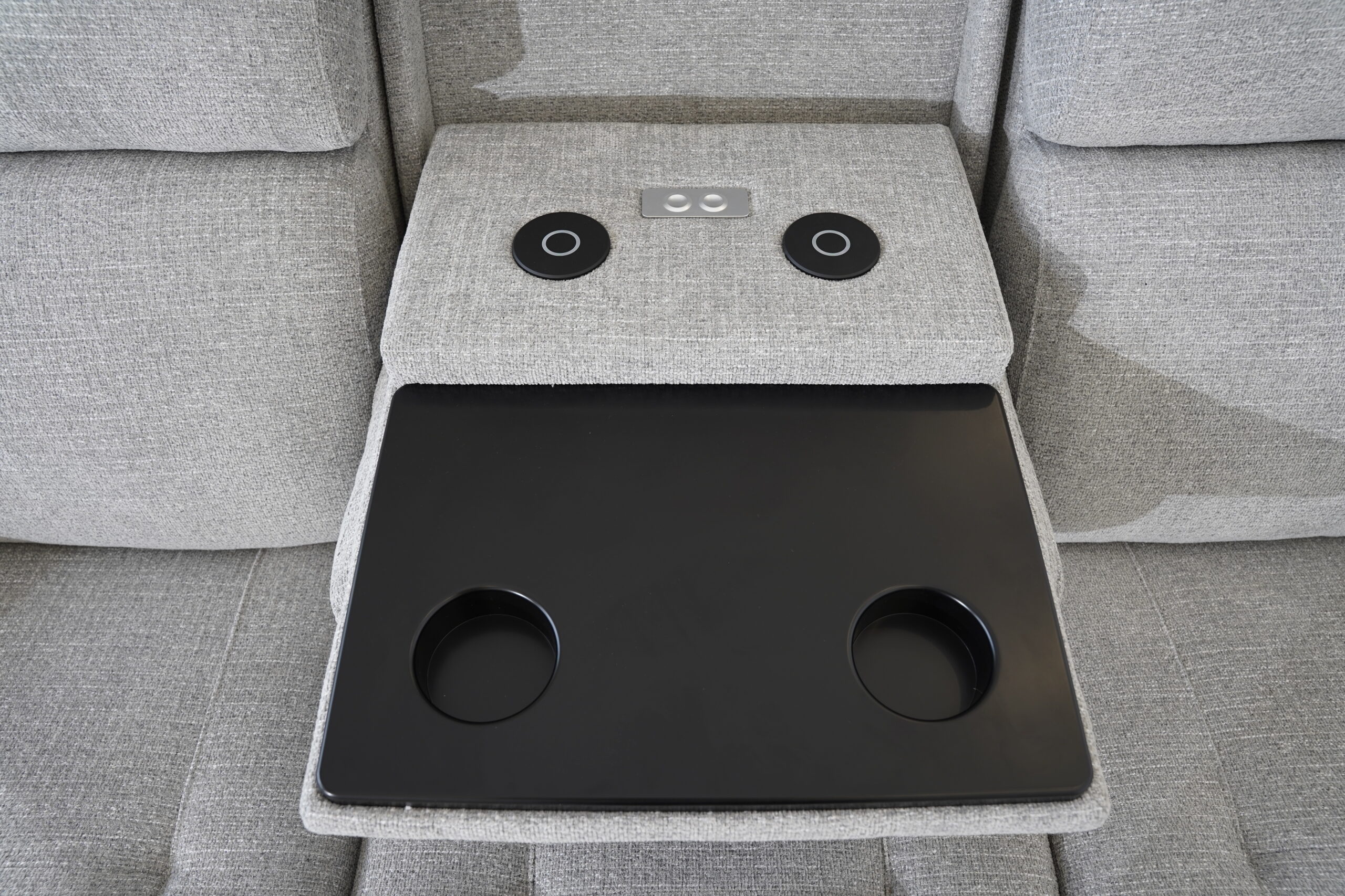 The standout feature is the innovative drop-down center seat back, which transforms into a functional console. Enjoy built-in cupholders for your favorite drinks, a solid surface ideal for snacks or devices, and integrated wireless charging to keep your phone powered without the clutter of cords. Thoughtfully included reading lights provide focused illumination, making it perfect for late-night movies or a good book.