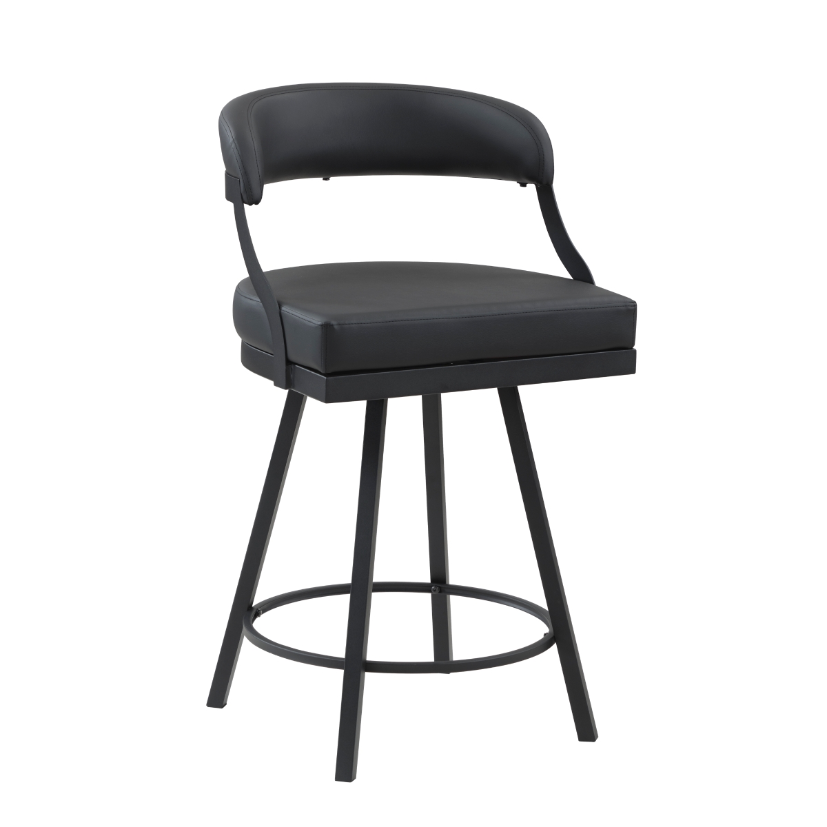 Designed for your home’s modern aesthetic, the Crowley Collection provides a stylish seating option for mealtime and social activities. The 24-inch height chair features a contoured back, black metal framing, and black faux leather seat.