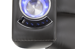Enjoy immersive sound with a built-in subwoofer supporting wireless playback. The recliner includes a USB port and an intuitive control panel for easy adjustments. Blue ambient lighting adds a modern touch, while armrest storage and cupholders provide convenient functionality. Designed for both comfort and convenience, the Patriot Recliner elevates your living space.