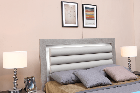 The standout feature of the Silverado Bed is its 3D LED lighted headboard, which adds a dramatic flair to your space. The luxurious leather-look upholstery in a rich gray finish not only enhances the visual appeal but also creates a calming ambiance. This perfect blend of detail and design makes the Silverado Bed a statement piece in any bedroom.